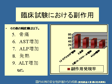 | 今月のEBM,ナウ(47) 再発・難治性急性前骨髄球性白血病治療剤 タミバロテン(Am80;アムノレイク)は1984年に東京大学薬学部の首藤らが新規合成したレチノイドです。厚労省がん研究助成金による白血病研究班が、ATRA投与後、再発例の急性前骨髄球性白血病24例に対してアムノレイクによる分化誘導療法を試み、14例(58%)が完全寛解に到達しました。 その後、臨床試験が開始され、再発・難治性APLに優れた有効性が認められ2005年6月に承認されました。本剤はトリセノックス(EBM44)同様に十分な経験が投与には必要であると警告が出されています。副作用を図に示します。 ![]() 追加コメント:臨床第U相試験で完全寛解率は61.5%、ATRA後の初回再発でも完全寛解率は81%。副作用に十分注意すれば有効性の高い薬剤です。 文献1.大西一功 急性前骨髄球性白血病。癌の臨床 2002年 48巻 第11号、p669-678 |